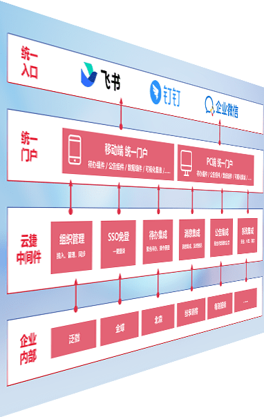 对协作平台提供支持服务,,支持企业应用与协作平台对接,,,,包含组织同步、、、消息集成、、、、待办集成等。。。支持目前主流的协作平台:钉钉、、、企微和飞书。。。